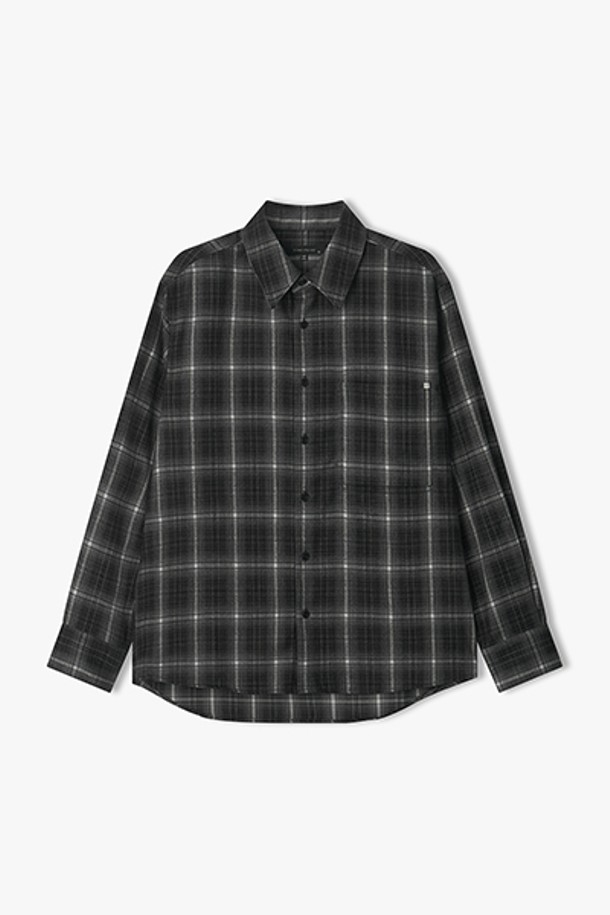 [25FW] LLF31605 블랙 세미오버핏 체크패턴 롱포켓 디테일 셔츠