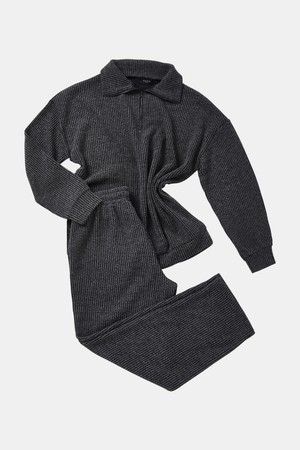 오버핏 빅사이즈 골지 반집업 셋업 CTEE123S
