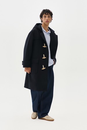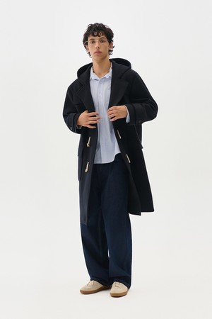 더플 후드 롱 코트