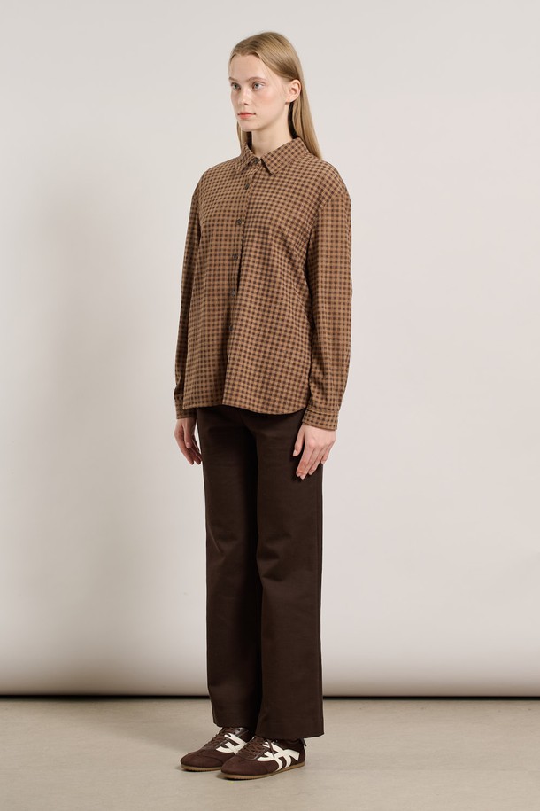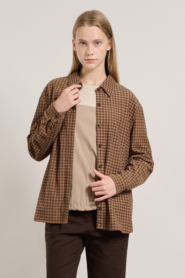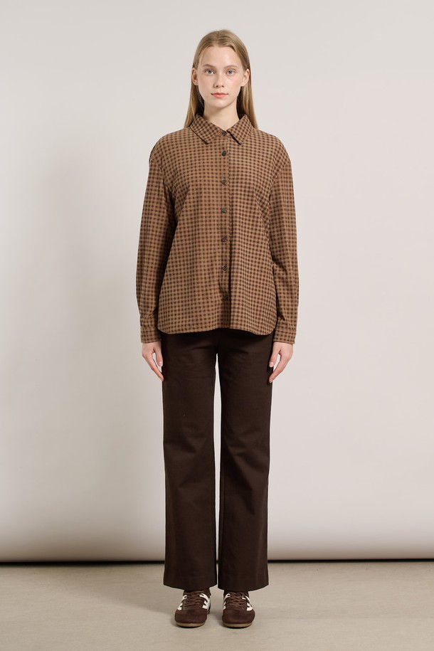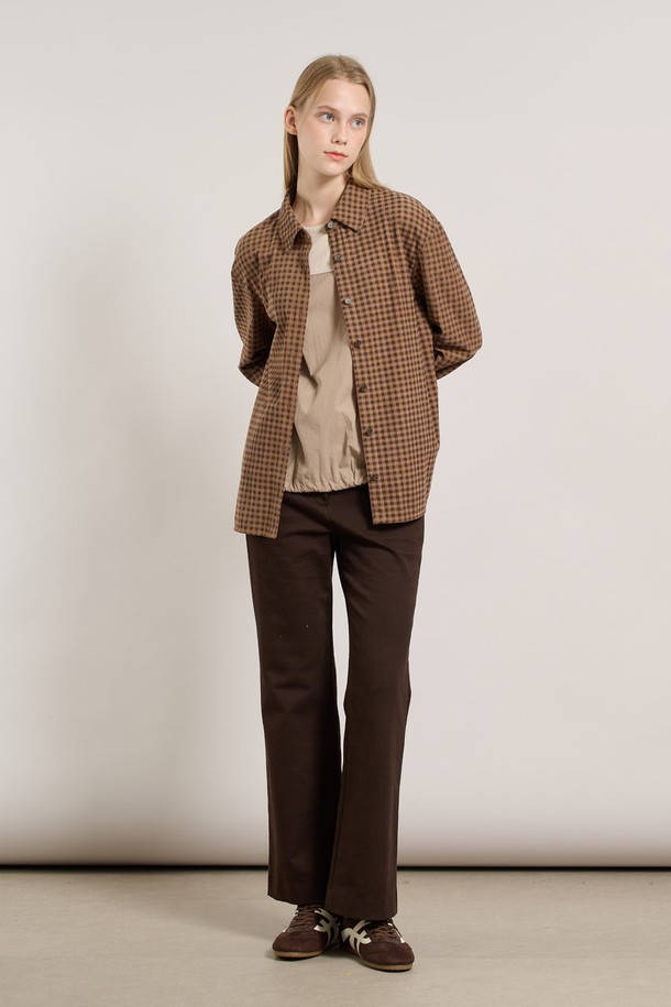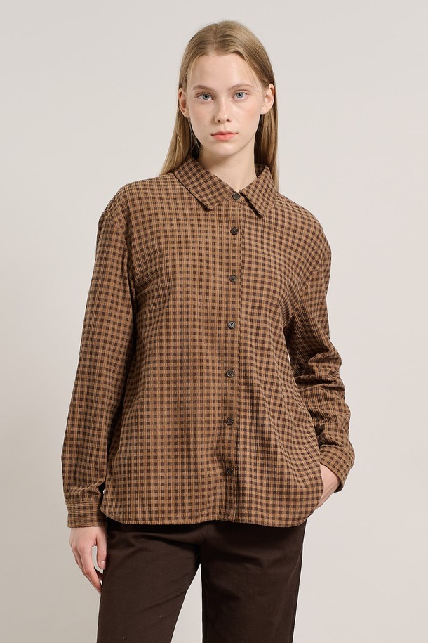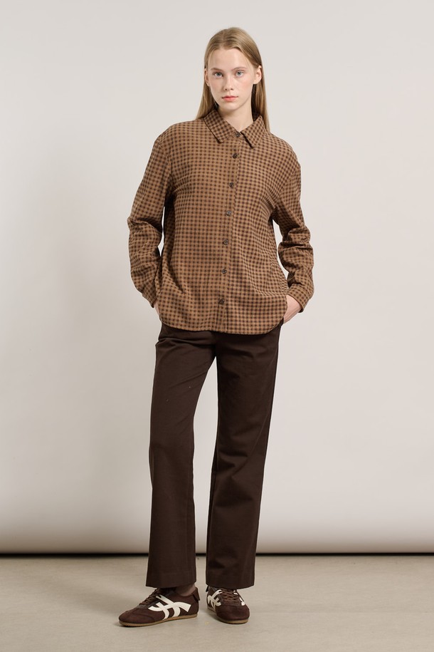 [25WT] 체크 코듀로이 뒤밴딩 블라우스 - DARK BEIGE A5W9B40773