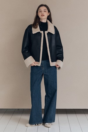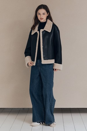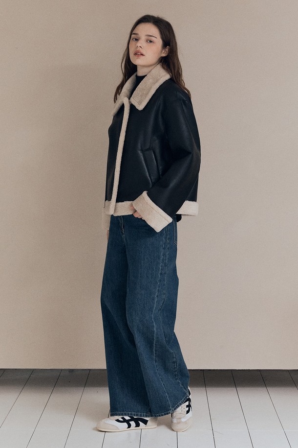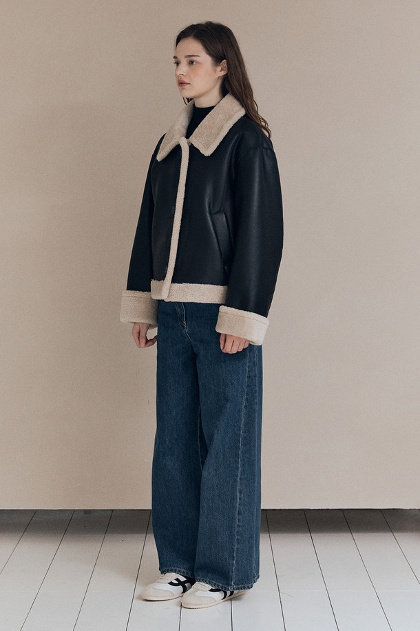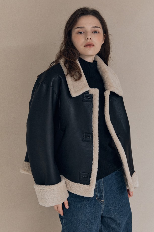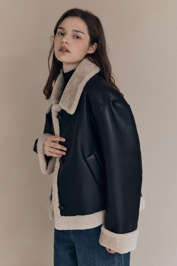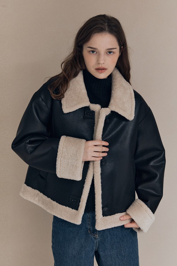 [25WT] 모노윈터 페이크레더 무스탕 - BLACK A5WAF81199
