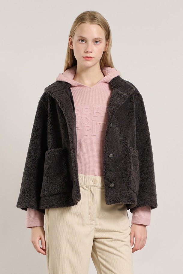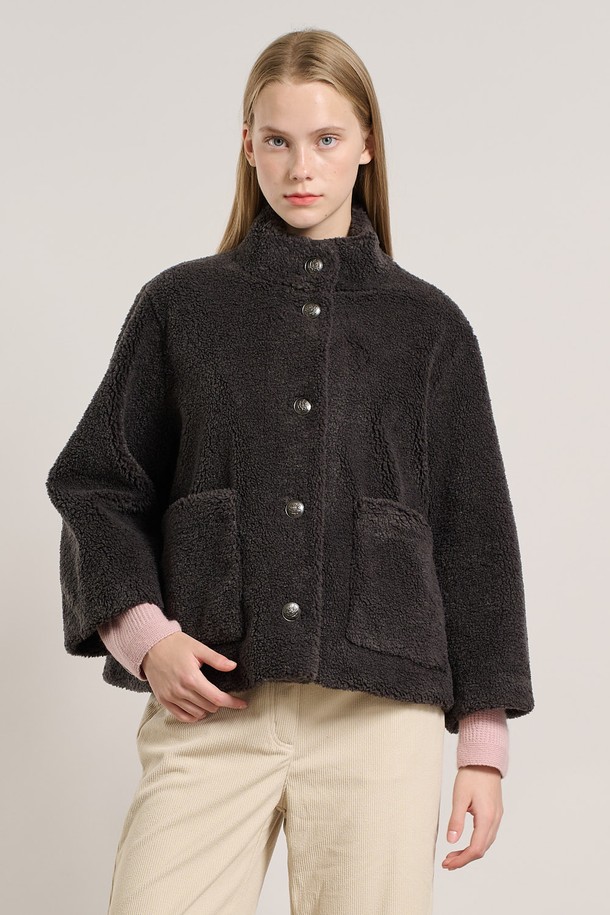 [25WT] 밴드넥 FAKE 무스탕 - CHARCOAL GRAY A5WAF81598