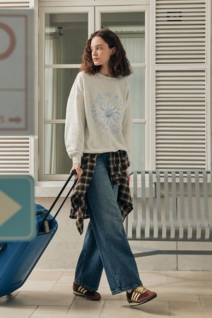 워싱 와이드 데님 팬츠 / 인디고