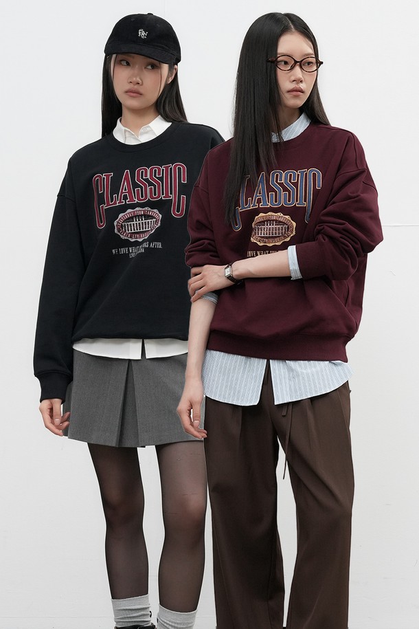[25FW] UNISEX 클래식 아플리케 루즈핏 맨투맨 [2COL] / SBE3U02009