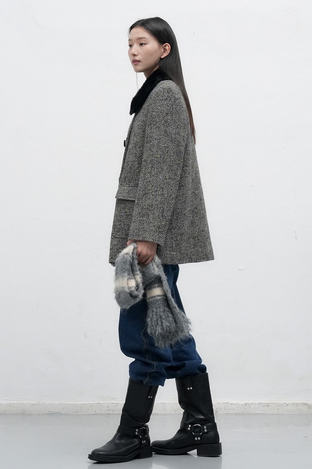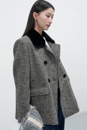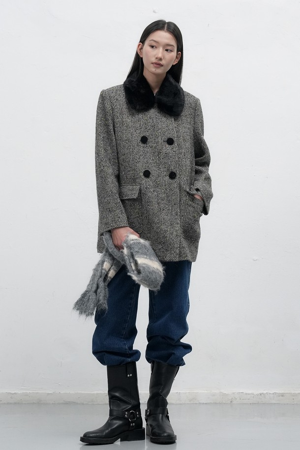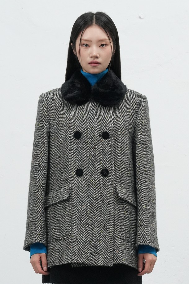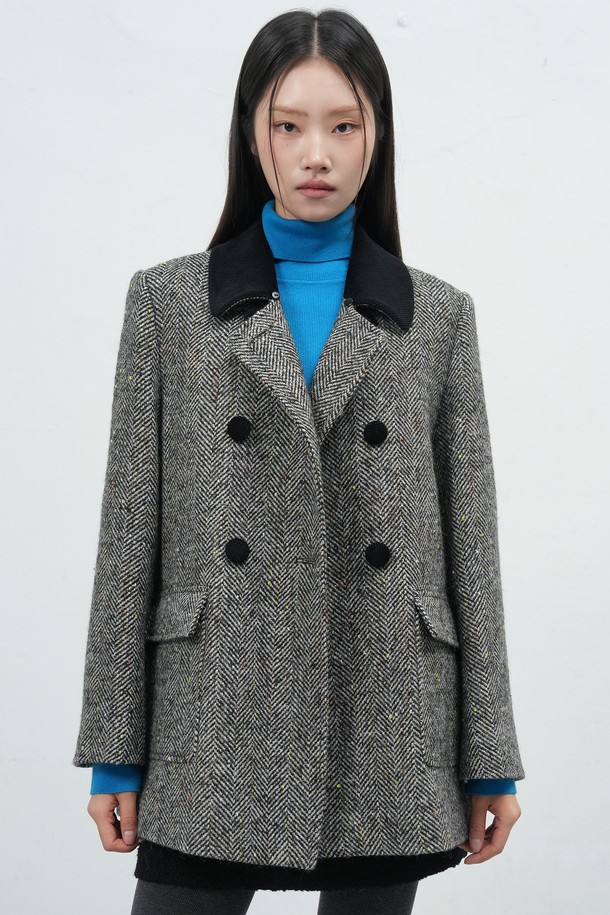 [25FW] WOMAN 퍼카라 헤링본 더블 하프 코트 [BLACK] / WBE4L10524