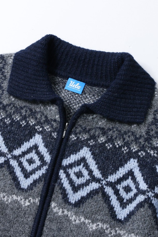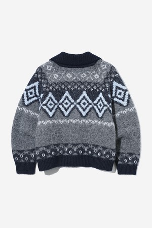 여성 노르딕 패턴 칼라넥 집업 카디건[NAVY](UBAGD50_45)