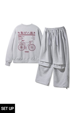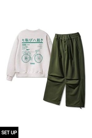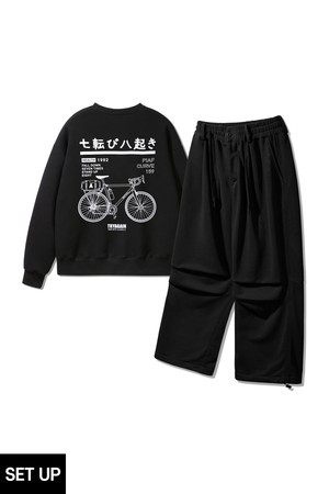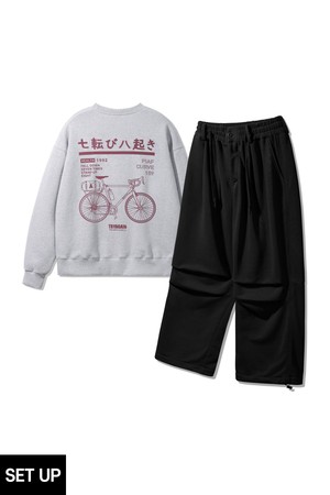 [SET] 바이시클 맨투맨 벨트 루프 벌룬 스웨트 팬츠 셋업