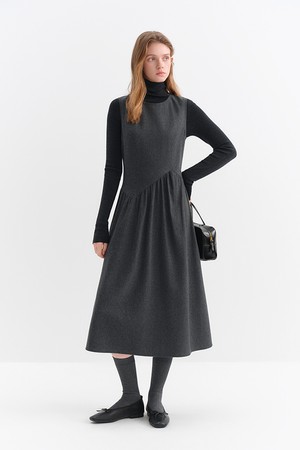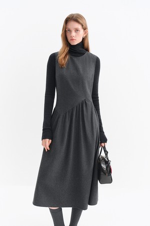 Shirring wool sleeveless dress