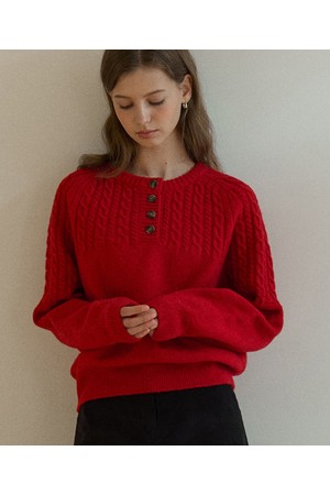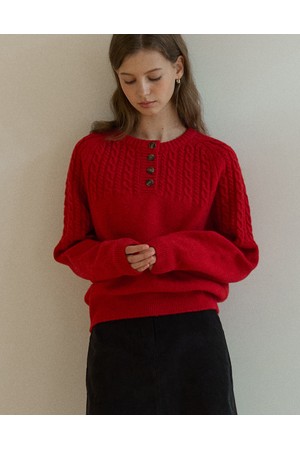 Button Wool Cable Knit - Red