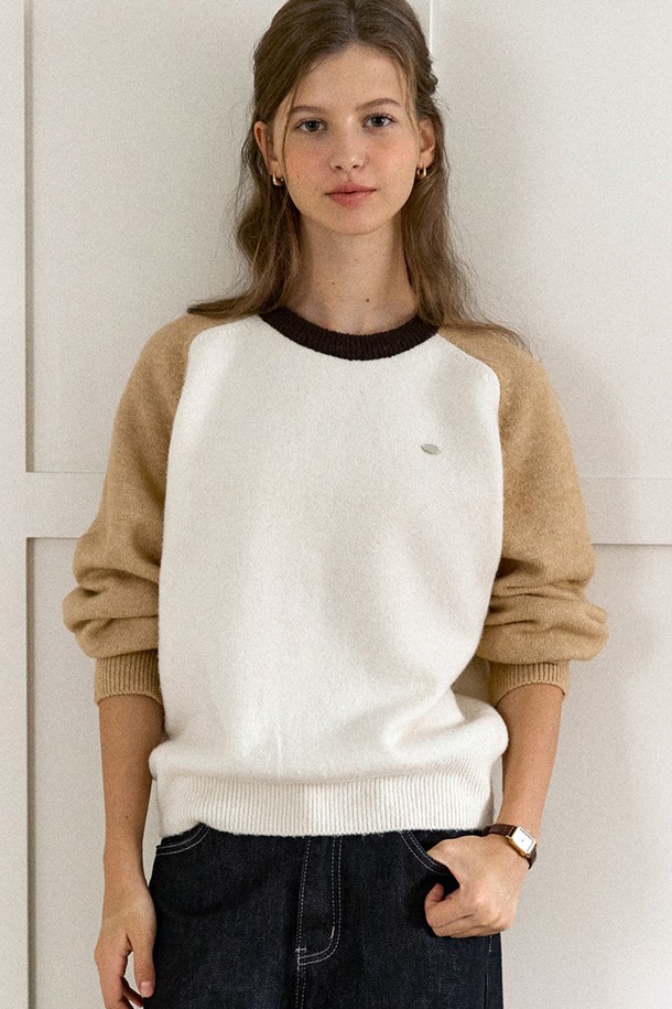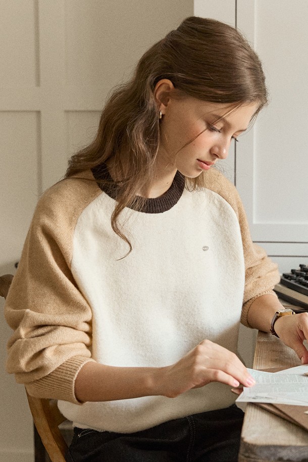 Two-tone Wool Raglan Knit - Beige