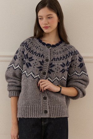 Flurry Alpaca Wool Nordic Cardigan - Melange Grey