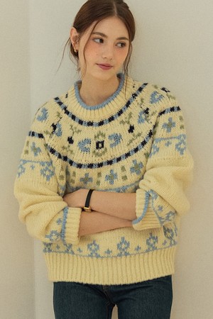 Noelle Alpaca Wool Nordic Knit - Sky Blue