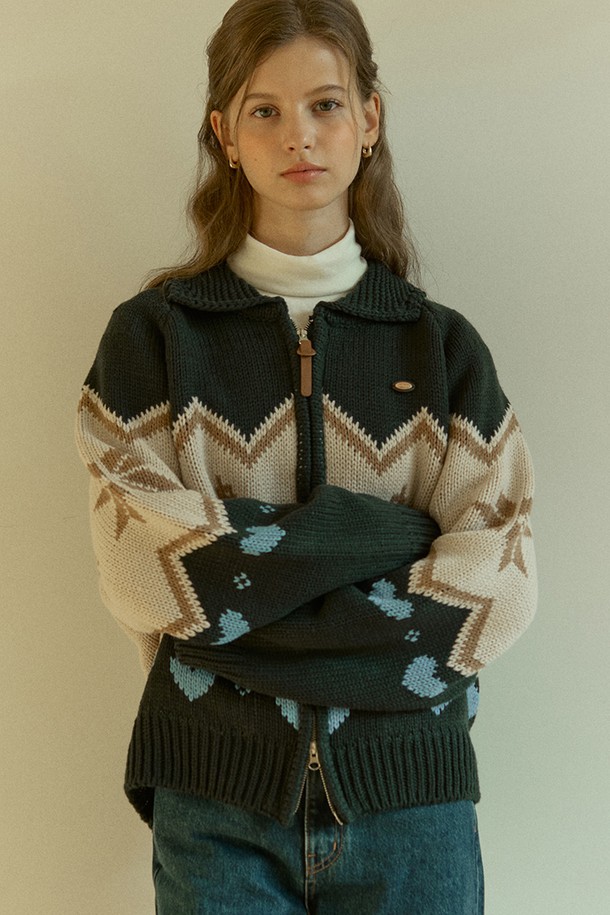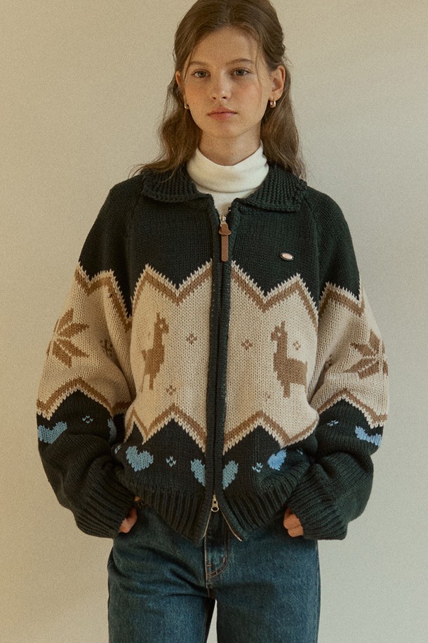 Alpaca Pattern Cowichan Knit Cardigan - Green