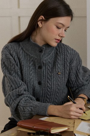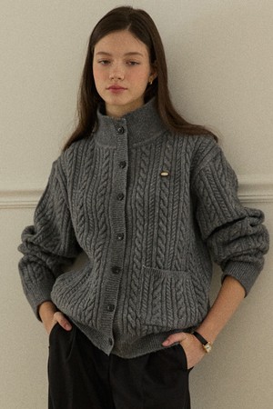 Caroline Wool High-Neck Button Cardigan - Grey