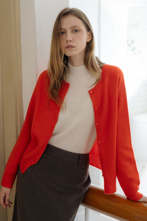 울 100 홀가먼트 루즈핏 버튼 가디건 RED