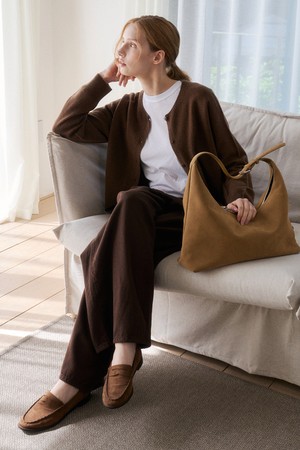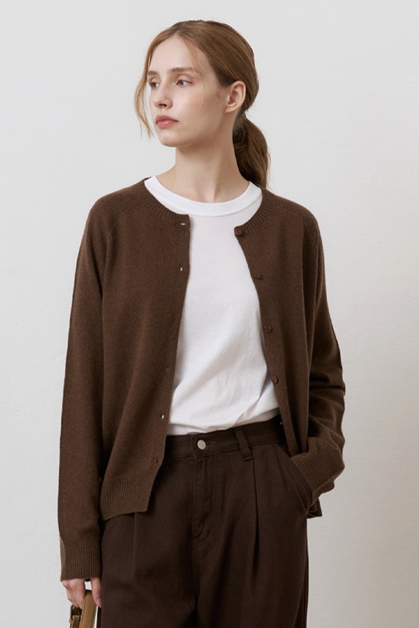 울 100 홀가먼트 루즈핏 버튼 가디건 BROWN