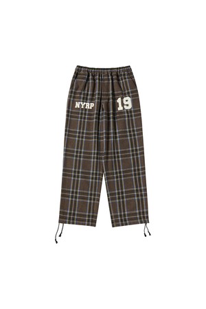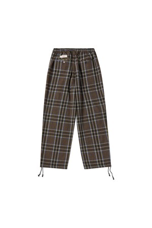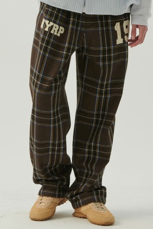 러프 프린트 플란넬 체크 드로잉 울 팬츠 브라운