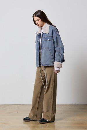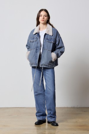 DENIM TUCK SLEEVE FAKE FUR JACKET INDIGO W5