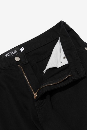 VINTAGE COTTON WIDE CURVED DENIM PANTS (BLACK)
