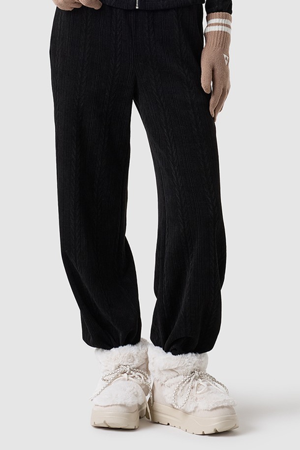 여성 케이블 자가드 와이드핏 팬츠 - 블랙 QQ422OFPN1