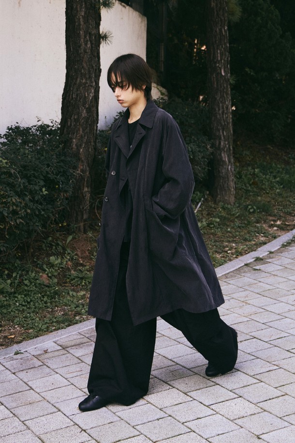 스웨이 워싱 블랙 루즈핏 트렌치코트_블랙