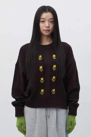 [25FW] WOMAN 플라워 케이블 니트 풀오버 [3COL] / WBE4L05545