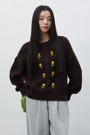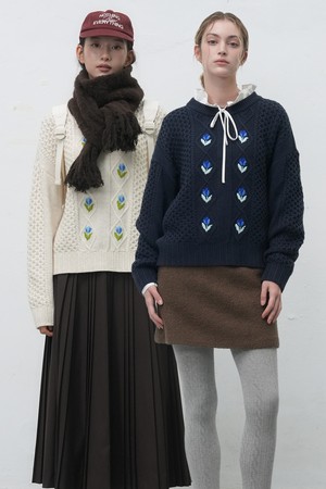 [25FW] WOMAN 플라워 케이블 니트 풀오버 [3COL] / WBE4L05545