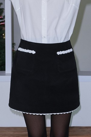Set_Lace Trimming Velvet Vest+Mini Skirt_Black