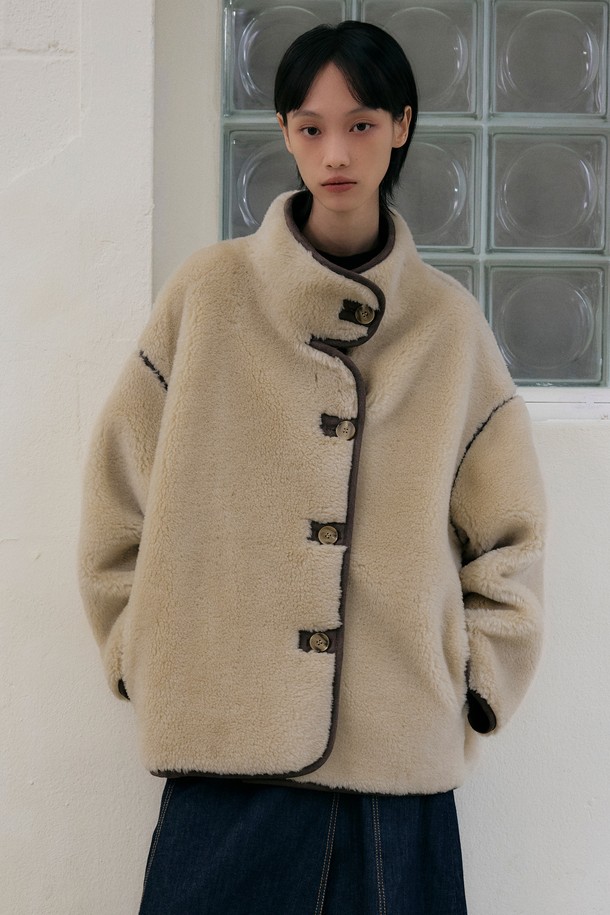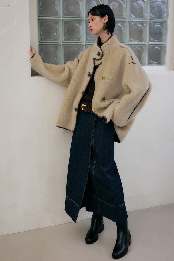 리얼 양털 오버핏 라인 무스탕 자켓 [베이지]