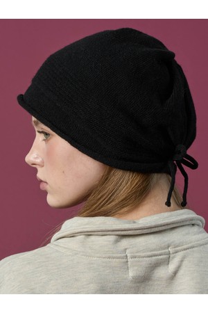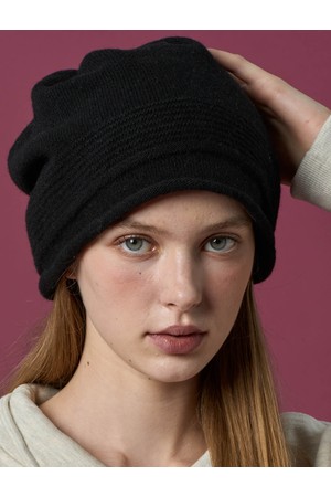 도톰 니트 방한 겨울 모자 롱 비니 [BLACK] 리본 스트랩