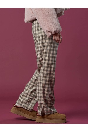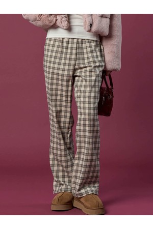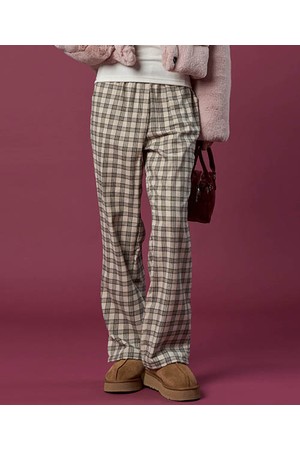 기모 도톰 체크 와이드슬랙스 밴딩 팬츠 [BEIGE] 가을 겨울 ver.