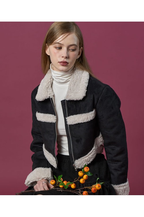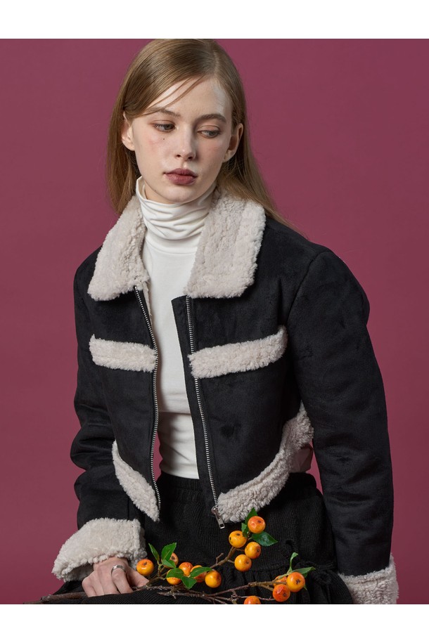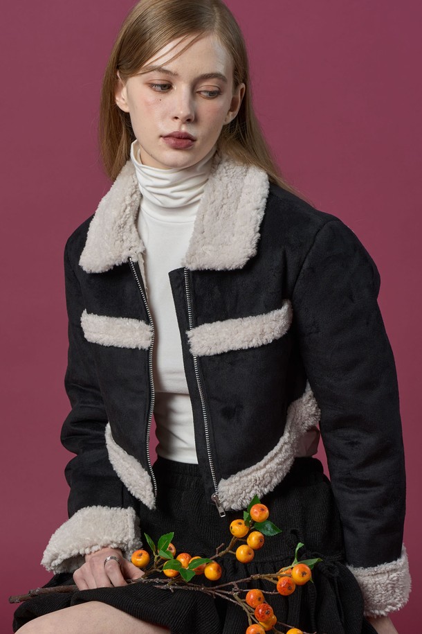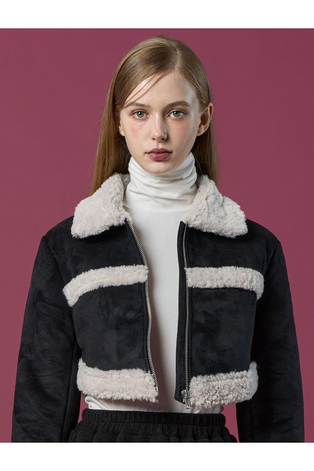 크롭 시어링 세일러 보온 플리스 무스탕 [Black] 언발란스 ver.