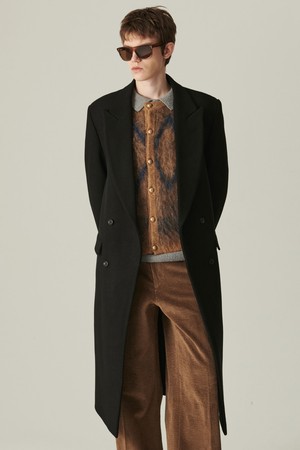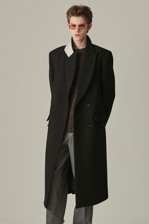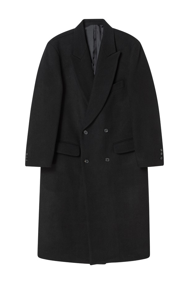 로맨틱 피크드 라펠 캐시미어 블렌드 더블 코트 블랙