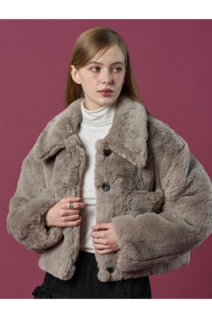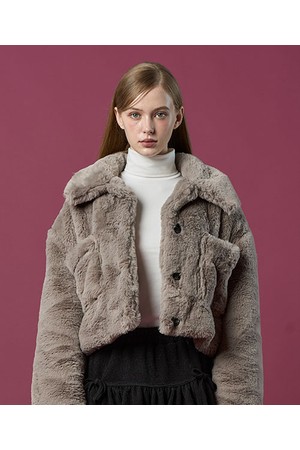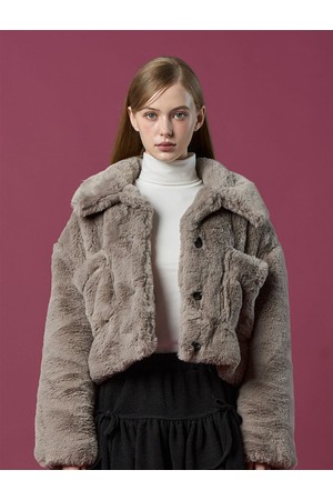 [밍크 ver.] 오버핏 크롭 누빔 단추 무스탕 자켓 [애쉬그레이] 비건 퍼 ver.