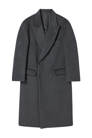 로맨틱 피크드 라펠 캐시미어 블렌드 더블 코트 그레이