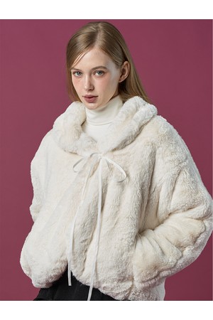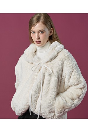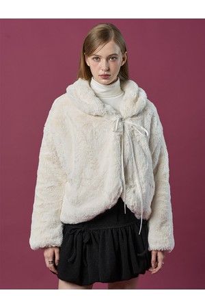 [밍크 ver.] 오버핏 크롭 리본 누빔 무스탕 자켓 [Ivory] 비건 퍼 ver.