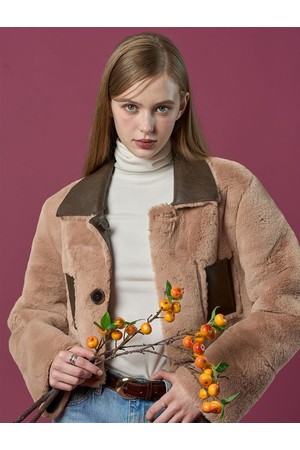 리버시블 밍크 크롭 단추 무스탕 자켓 [Brown] 프리미엄 LD ver.