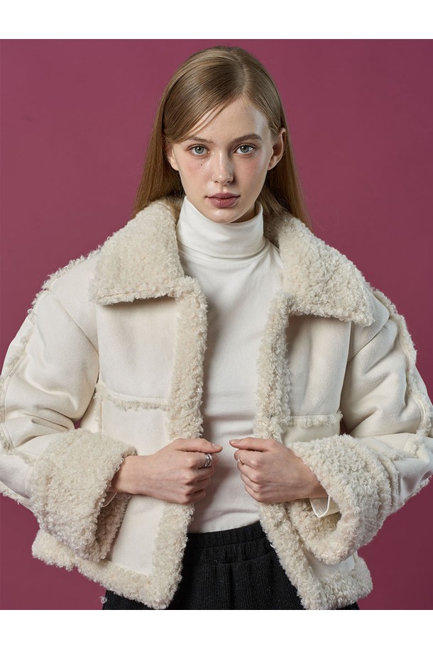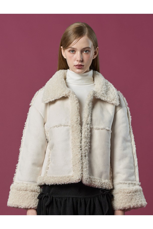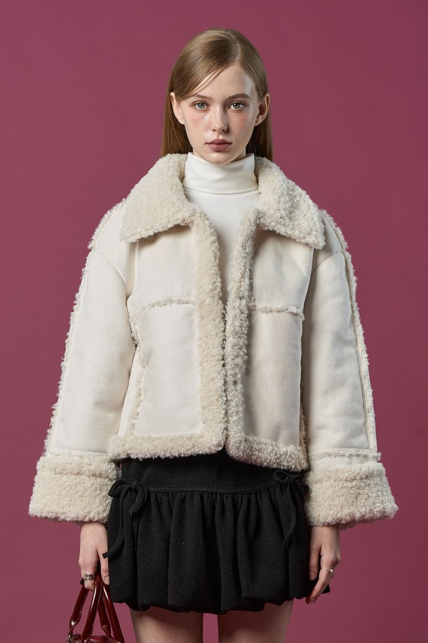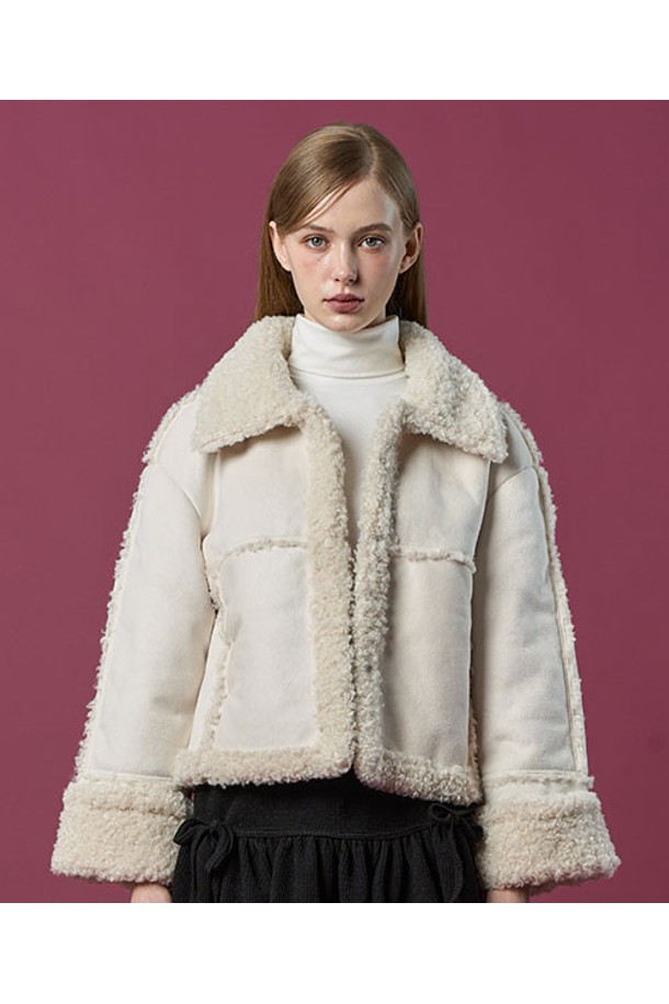 엘르 오버핏 스웨이드 플리스 무스탕 자켓 [Ivory]