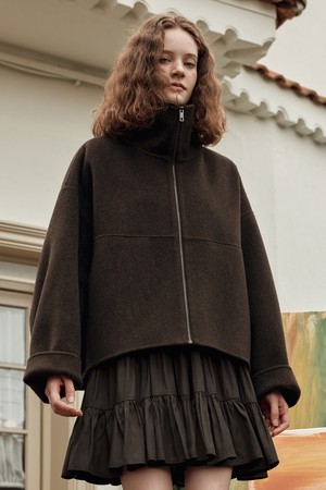 [2컬러] 캐시미어 하이넥 집업 하프 코트