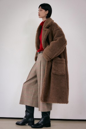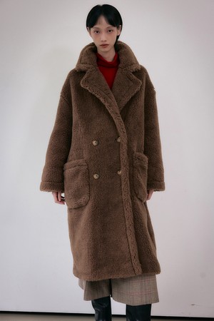 테디베어 오버핏 더블 롱 울 코트 [다크브라운]