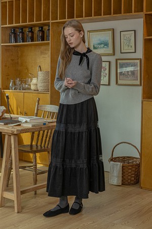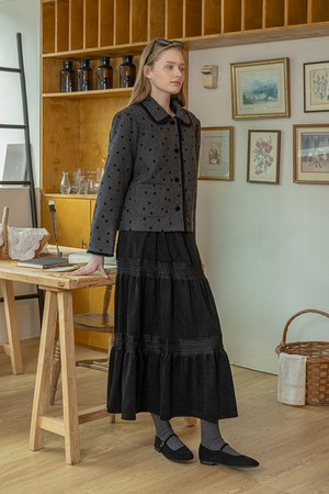 Winter black velvet lace skirt