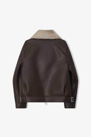 [25FW] LLW25653 브라운 세미오버핏 램 텍스처 무스탕