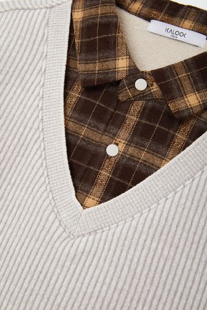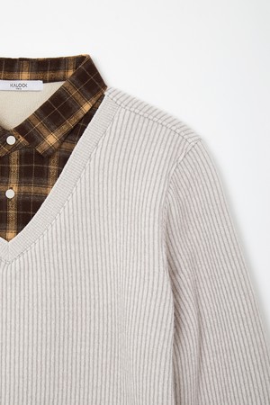 셔츠 레이어드 플리스 니트 CNIT111