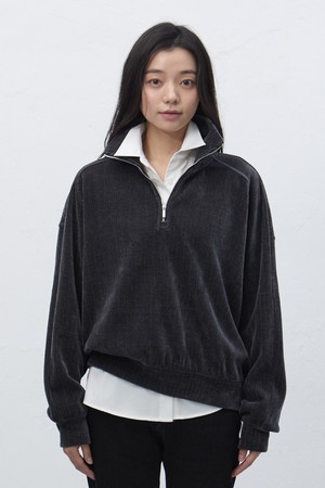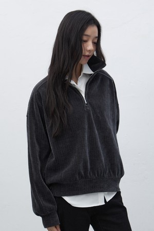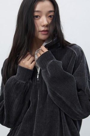 [25FW] WOMAN 리브드 벨로아 루즈핏 하프집업 [2COL] / WBE4L51521