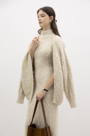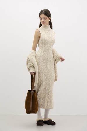 Fitted sleeveless knit dress and cardigan set_OATMEAL