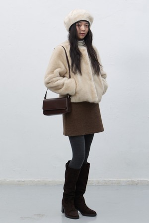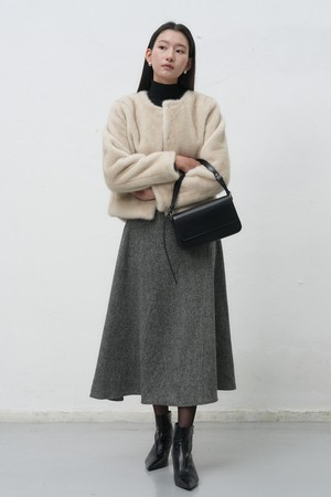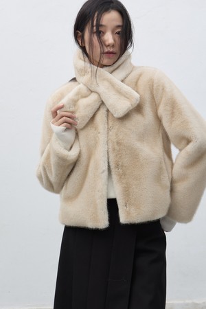 [25FW] WOMAN 노카라 머플러 페이크 퍼 자켓 [2COL] / WBE4L07536