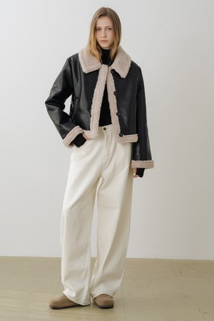 울 블렌드 시어링 무스탕 점퍼 BLACK