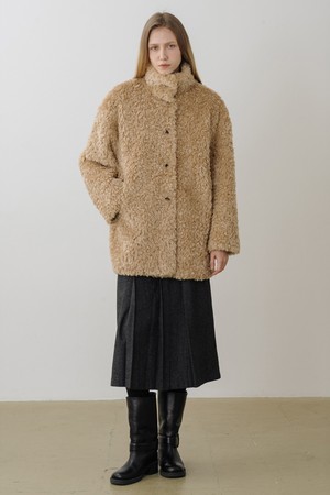 하이넥 빈티지 하프 퍼 무스탕 코트 BEIGE