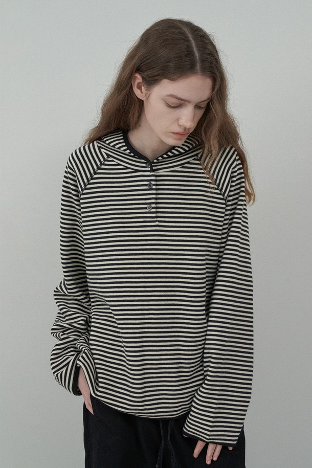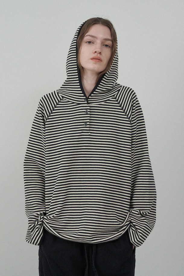 버튼 후디 스웻셔츠 -Navy