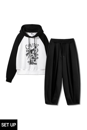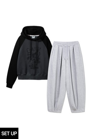 [SET] 카타리스트 래글런 크롭 후드티 벌룬 와이드 팬츠 셋업
